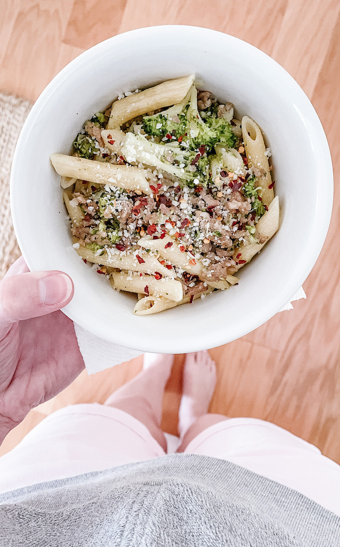 - Sausage & Broccoli Pasta. Slightly modified this recipe from Liz Joy by using ground, sweet Italian sausage and broccoli florets, and it is delicious!